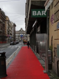 A little oddity in Rome around Christmas time: many shops lay out a red carpet on the pavement outside their windows. I haven’t seen that anywhere else.