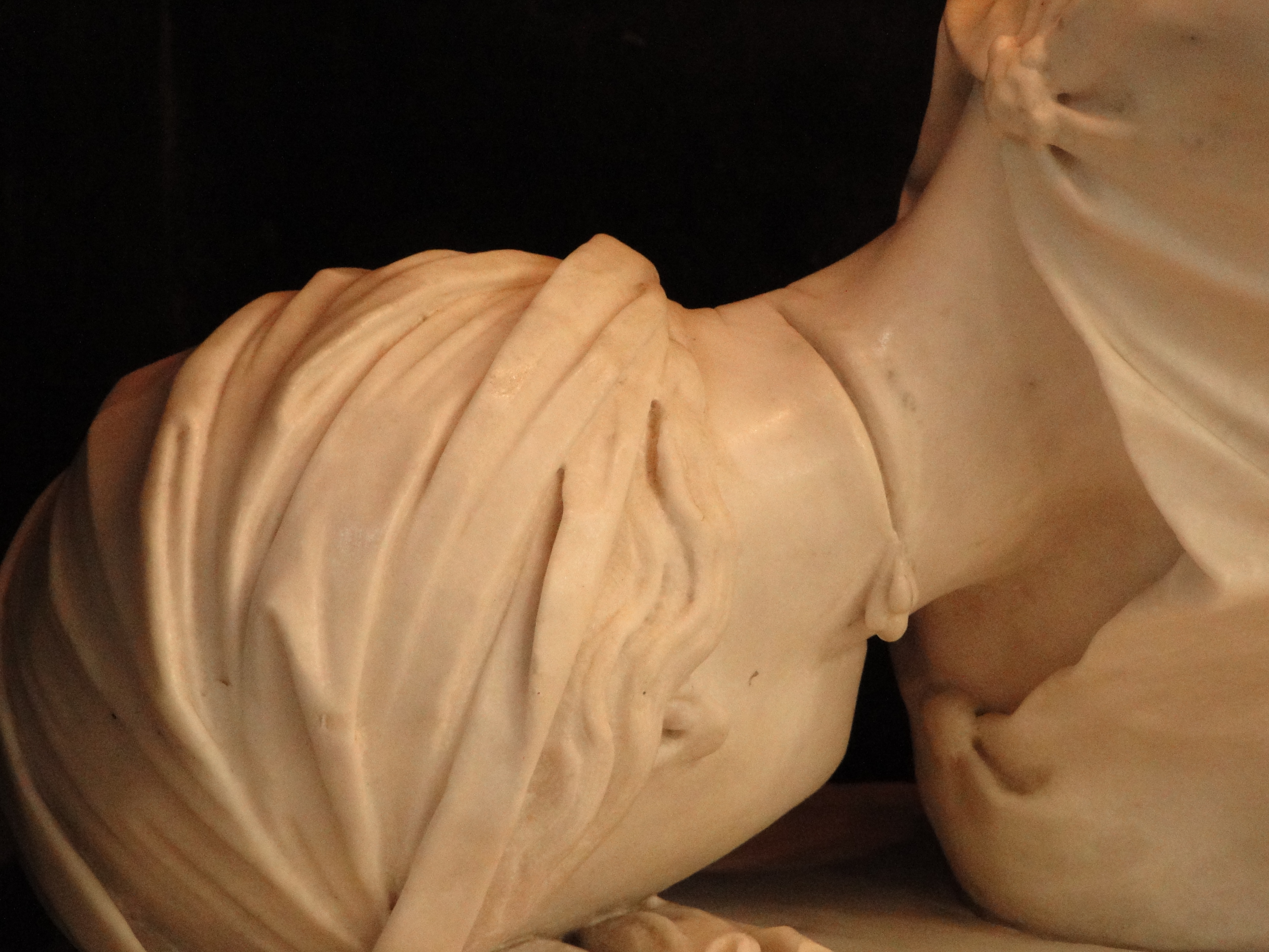 About 12 centuries later, Santa Cecilia in Trastevere was renovated and expanded to build a more grandiose church in the spirit of the times. During the excavation in 1599, Cecilia’s body was found supposedly unaltered, in a twisted position with a very apparent cut on her neck. The young sculptor Stefano Maderno, a distant relative of St Pietro’s chief architect Carlo Maderno, was there to see the body. He carved a sculpture which was so original and touching that it overshadowed all of his subsequent work. The sculpture shows Cecilia in the exact position she was when she was found, her head twisted to show the large cut on her neck. She looks like she is made of flesh, the curve of her body flowing harmoniously with the pleats of the cloth covering her. Maderno went on to work on various commissions in the city, but his name remained forever attached to this one sculpture.