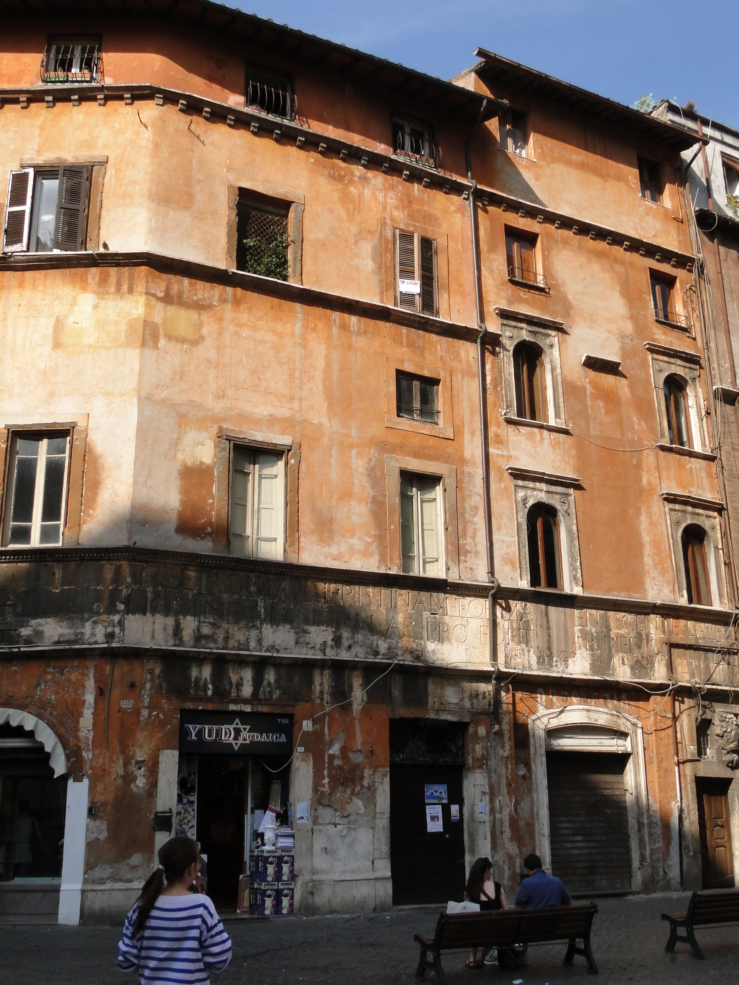 When I first came to Rome to look for accomodation, I visited an appartment just opposite the synagogue. I loved it but at the time, decided not to rent it because it was too far from our children’s school and needed too much work for a temporary accomodation. Still now, a few years later, every time I go to the ghetto, I look at the building to see if “my” appartment is occupied. I did spend many dreamy hours refurbishing it and living in it in my mind. Maybe one day…