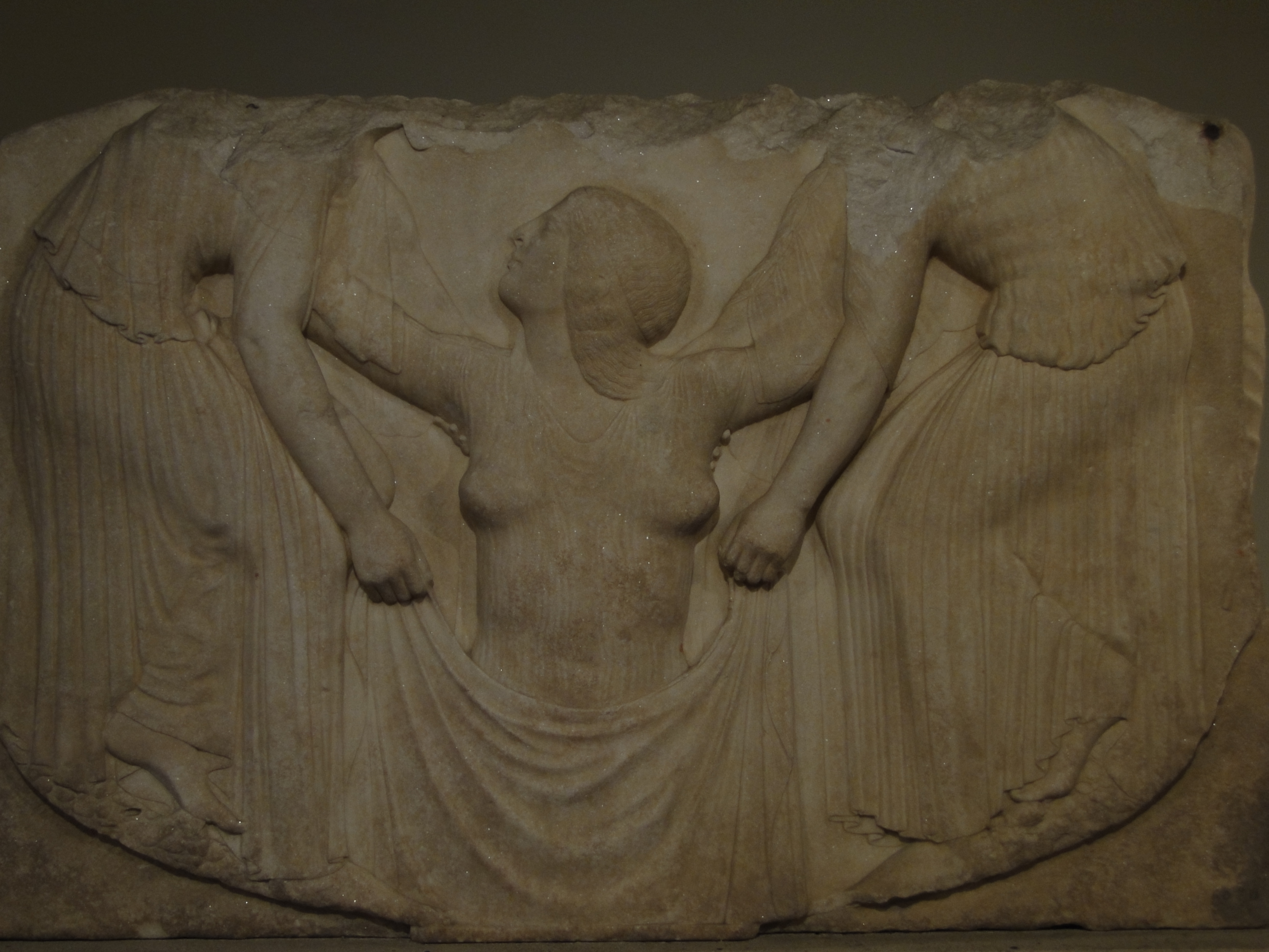 The meaning of the Ludovisi throne is debated. For some, it represents the birth of Venus (or Aphrodite), coming out of the sea, and was used for the cult of the goddess. Meanwhile, for other scholars who compared it with reliefs and terracottas from Magna Grecia, it shows Proserpine (or Persefone in Greek) coming back from inferno to bring back spring on earth. They date it back to the 5th century BC. On the left side of the throne is carved a representation of a young woman burning incense, while on the right side is a young nude playing the flute, the two figures supposedly representing sacred and profane love. The sculpture was found in the Horti Sallustiani, where the Dying Gaul had been found earlier. I personally find it quite modern in appearance and composition, almost out of the Art Nouveau style of the 1930s.